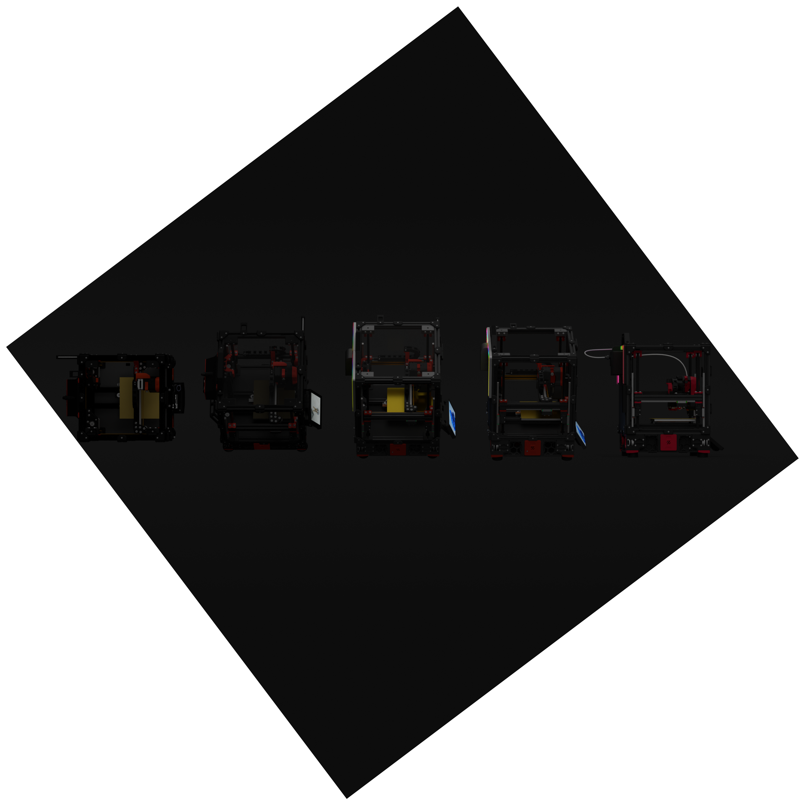 - Some people said with the help of 250mm spec is the best, this project may agree. Although right now most important parts (from the original and from this repo) are compatible and to be printed on a smaller printer, and then some other parts, except the bottom panel, can be printed within a 150mm print volume.