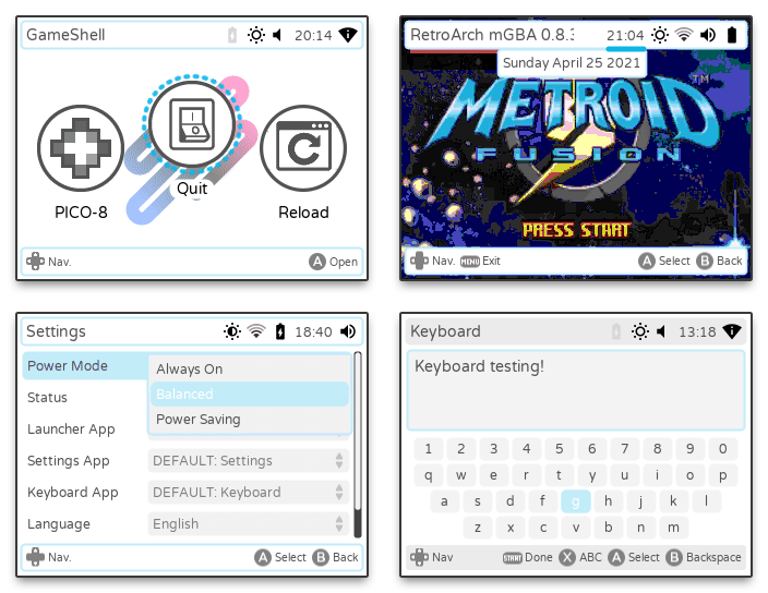 The launcher is quite untested on devices other than the GameShell, and features like Wi-Fi settings, sound volume settings, brightness settings are not expected to work.