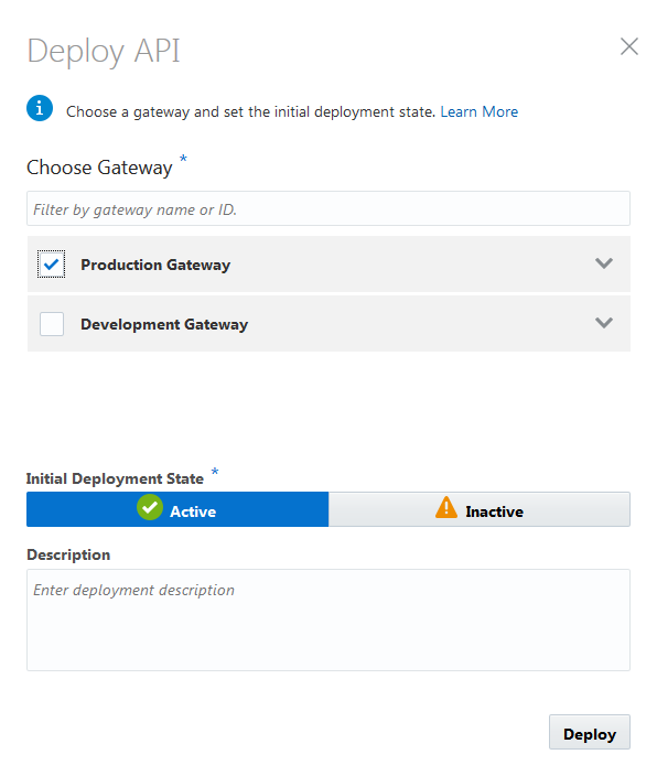 In this step the API is deployed to a gateway.