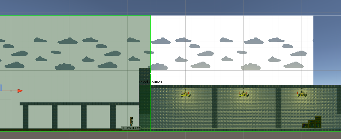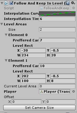 Unity is built upon the principle of allowing the users to create their own tools. Beginning this project we saw the potential to code some small editor tools to speed up the actual world design. One of the tools/systems is a camera tool/system making tweening between level "stages" or level “targets” easy. It also made sure the view was clamped (both size and position) within the play area to only show the wanted areas of a map at any given time. This system was built to work both in runtime and edit-time. In edit-time it’s a tool as it draws custom handles and gizmos for resizing level areas visually. It also allows for quick-moving the camera to the correct position (focusing on the customly set target, being the player in most cases).