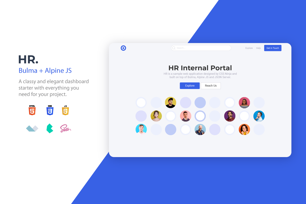 You can access the demo here. HR is built with Bulma. Thanks to Emy Lascan for the homepage hero inspiration.