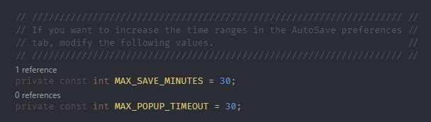 If you want to change the intervals maximum values, you must change them from the source code inside AutoSave.cs.