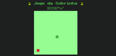 O famoso Jogo da Cobrinha (ou Snake Game) com JavaScript. O projeto foi desenvolvido durante o Bootcamp HTML Web Developer da Digital Innovation One, utilizando HTML5 Canvas e localStorage com JavaScript para persistência dos dados, com implementação de um sistema de pontuação e de recordes.