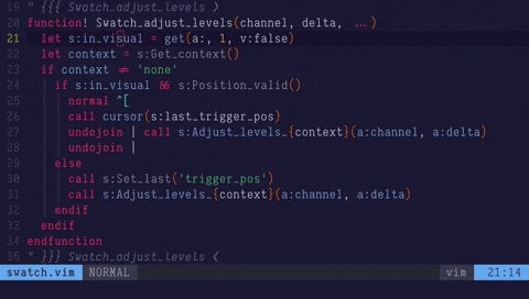 The easiest way to make your own custom colorschemes. There are other color pickers available for nvim/vim, swatch.vim is different because: