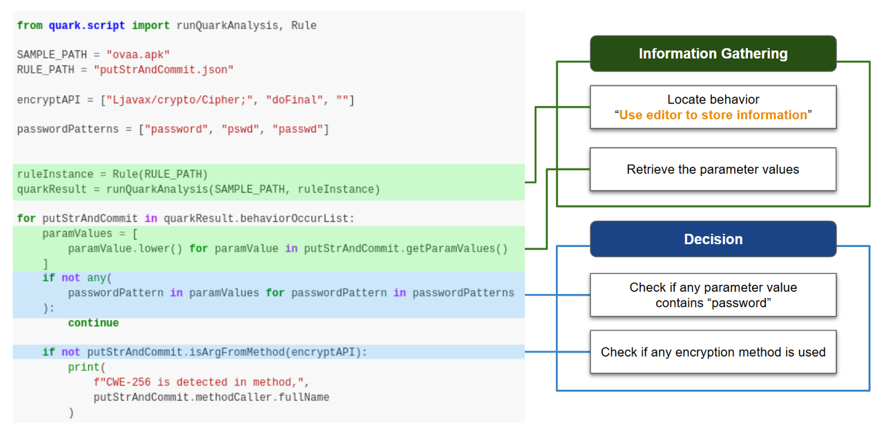CWE-256 Detection Process Using Quark Script API
