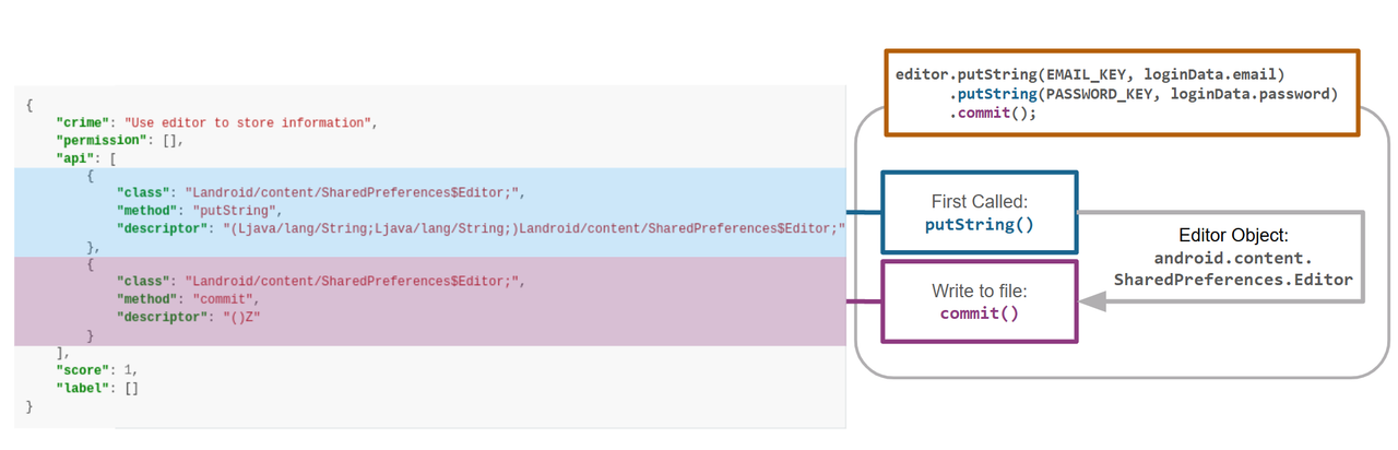 putStrAndCommit.jsonto identify behaviors that store information usingSharedPreferences.Editor.Next, we call
