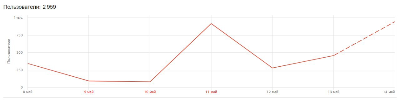 ~3000 уникальных посетителей, на пике 1600 ежедневных посещений