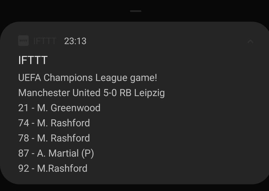 This script uses api-football to get the data about matches. And to send you notifications it's using IFTTT webhooks and notifications.