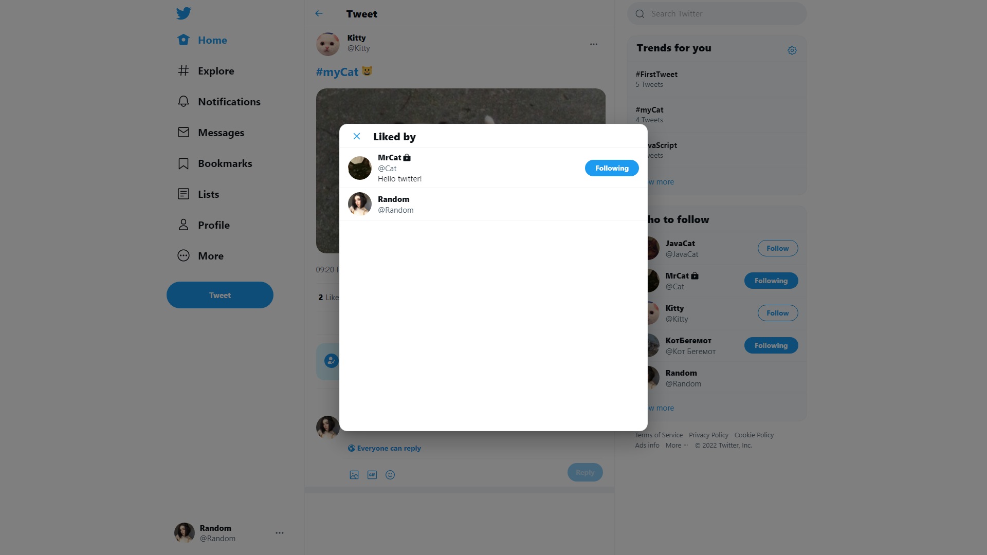 - Users can Delete tweets, Send tweet via Direct Message, Add tweet to Bookmarks.