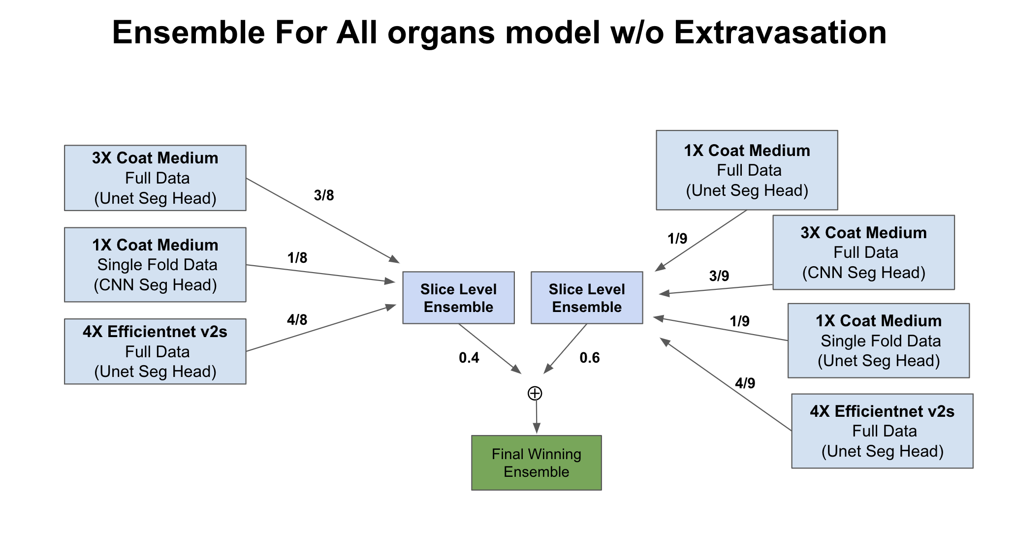 Final ensemble for all organs model includes multiple Coat medium and V2s based models trained on either 4 Folds or Full data.