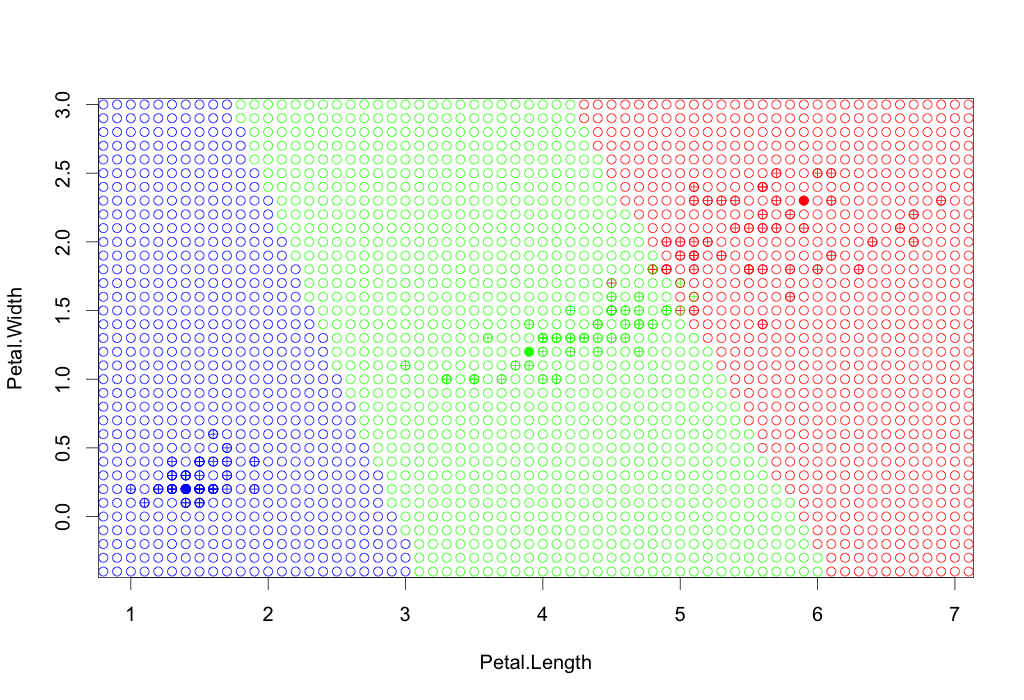 }We are using parzen windows classification algorithm with gaussian kernel and h = 1.6.