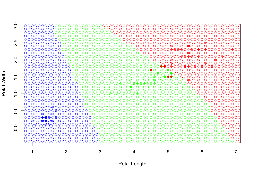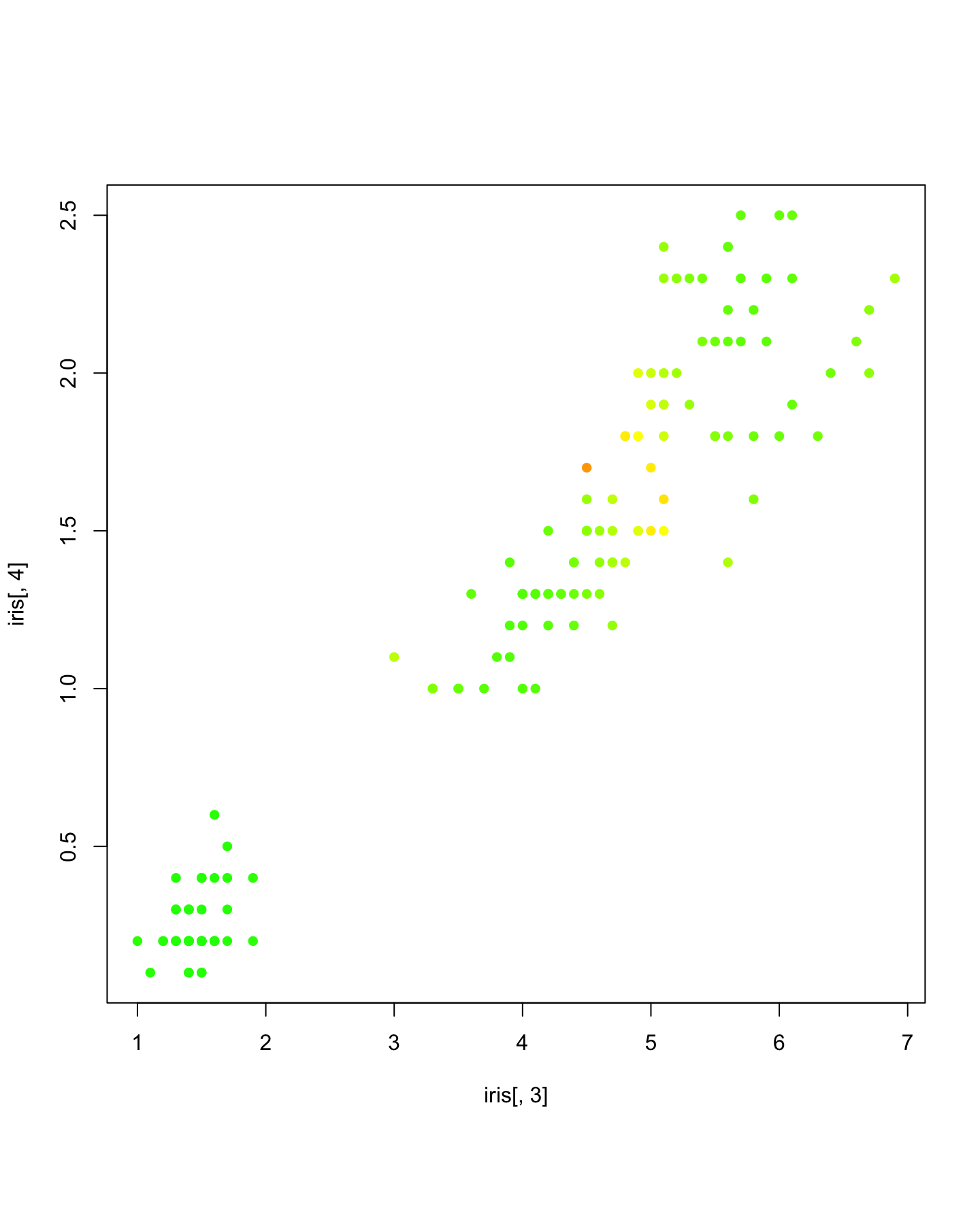 Below is a margins plot for the iris dataset. Dots are colored from green to red, where green is largest positive margin and red - lowest negative.