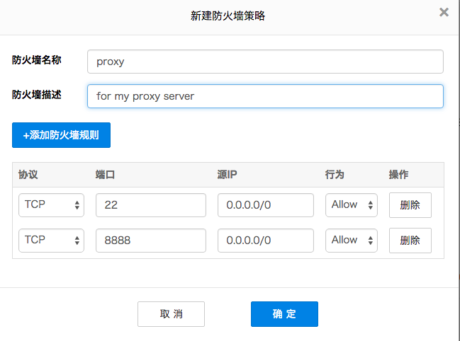 - 防火墙名称和描述可以随便填
