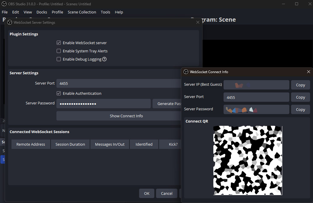 Server Password value to the Settings/OBS.json file's ServerPassword setting.