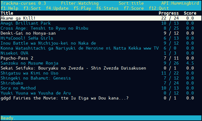 $ trackma-curses